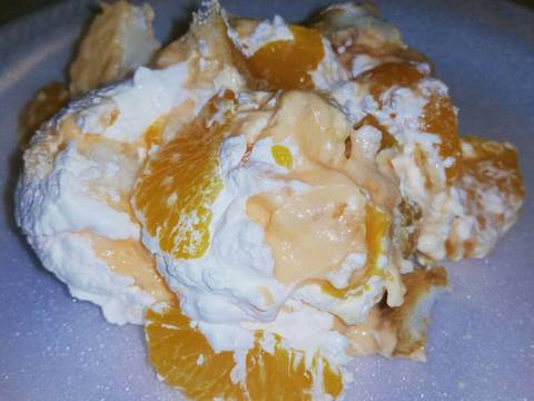 In a large serving bowl or trifle bowl line the bottom with 1/3 of your angel food cake chunks. Then pour 1/3 of the orange mix & spread evenly. Ontop of that spread 1/3 of your container of cool whip. Top cool whip with mandarin oranges & repeat the previous steps until all ingredients are used up & you’ve ended with mandarin oranges. Serve & enjoy!?